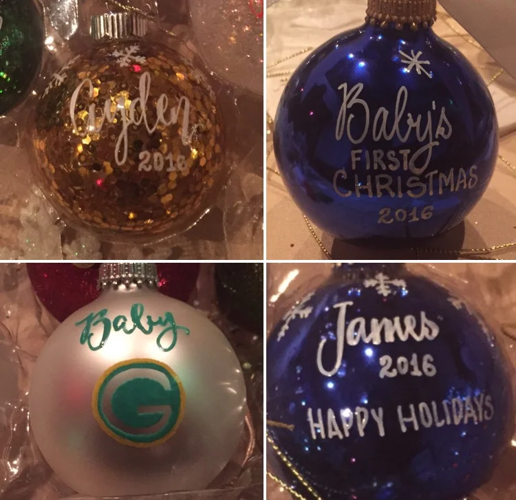 Grab some craft ornaments from Hobby Lobby or just some glass ornaments. 3" ornaments are probably the most popular.